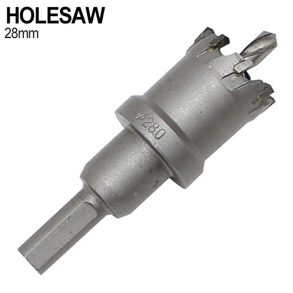 5.ホールソー28mmで裏から深さ4.0mmの深さまで穴を開けます。ボール盤を使って穴を開けました。注意点としては油を常にさしておくこと。そして少しずつ、ホントに少しづつおろしていくこと。(貫通させないように注意します)