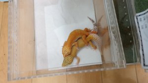 一緒にしてみました。メスにストレスがかからないようにメスのケースへオスを入れ得る。