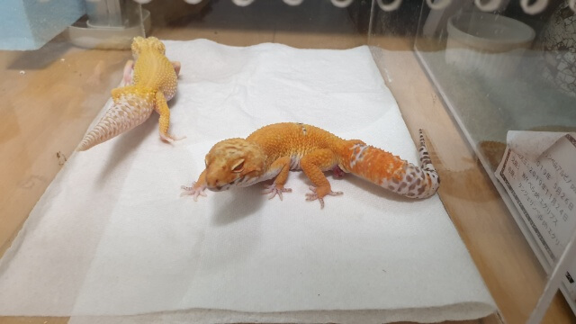 オス(ハナ)がちょこちょこしすぎて他の二匹の気を反らせたのか、メス(キリン)はケースをよじ登り、逃げようとしたので断念。