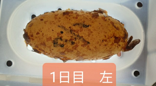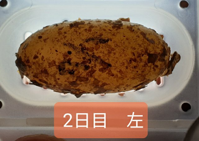 左の卵、裏側にも日付が書いてあります・・・。どういうことなんだろう・・・。自分でわからなくなってます(^ー^;)