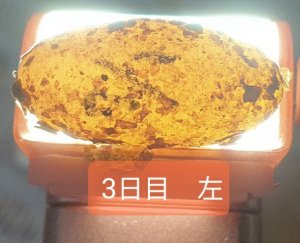 タマゴが最初から最後まで凹んだりすることなく、大きな丸のままで最後まで行ってくれました。そのせいか、3gと大きめのサイズで生まれてきました。