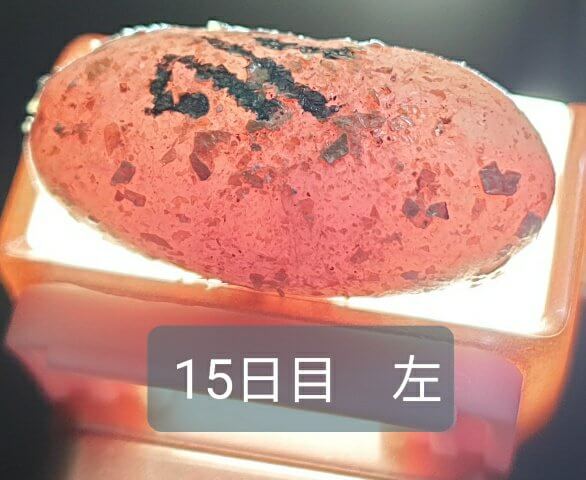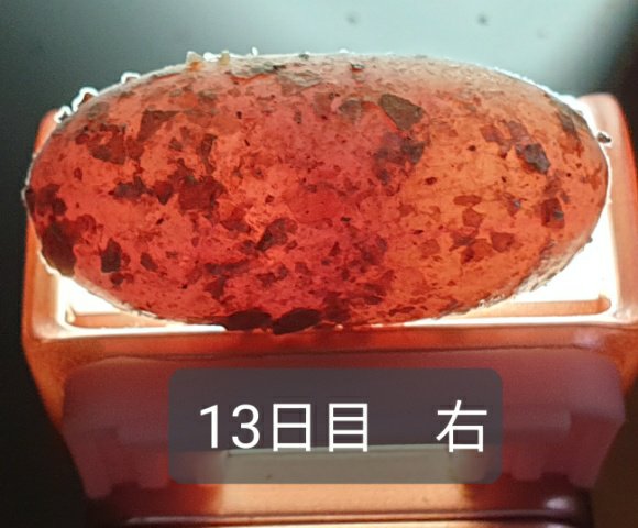 さかのぼって見返してみた結果、4日目に天使の輪が上部じゃない位置に確認。その位置を上にして置いて13日目にそれを上にもう一度マジックで書き直しているみたいです。