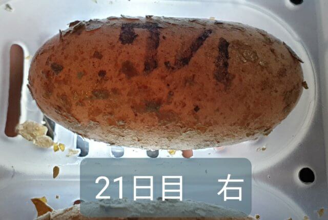 一つ前にクラッチしたミカン4thは2日目にうっすらと天使の輪が見てました。なので明日見えなかったら、希望薄いってことなんでしょうか。このあたりも検証が必要ですね。