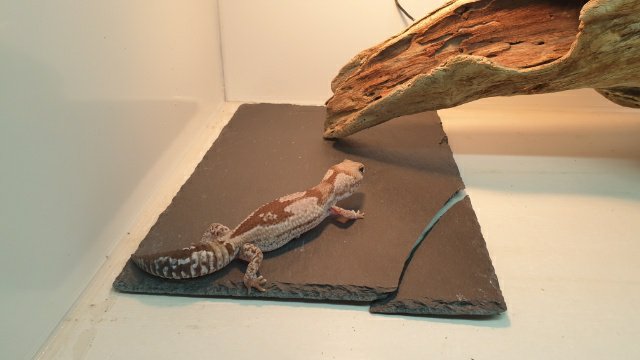 新しく完成したケージに被写体として入ってもらいました。オレオズールーちゃんです。バスキングプレート、ダイソーで200円のものを買ってきたのですが、開けたら割れてました><