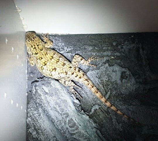 マラカイトハリトカゲは昼行性なので夜は寝ていることが多いです。これも慣れてきてだいたいどのあたりにいるかがわかるようになってきました。この写真に一匹、隠れています。見つけられますか?