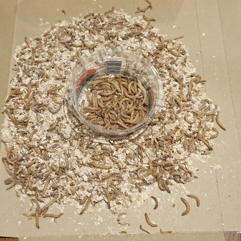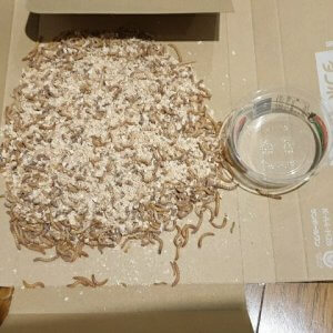 今回はヤフオクでミルワームを購入してみました。購入したのは200g(約2000匹)1500円です。