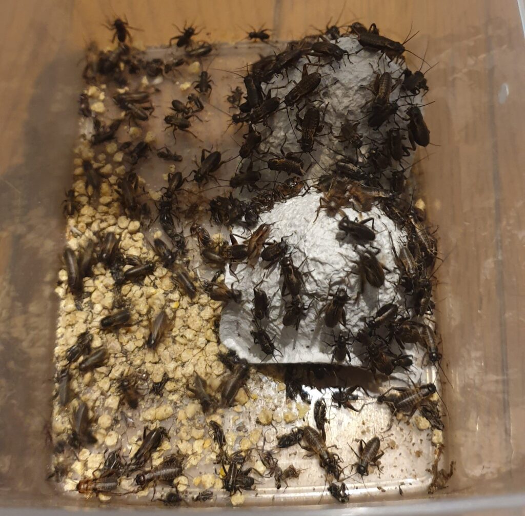 そして帰る前にエサをと思って、SukeRepさんのブースによって冷凍コオロギを買いたかったのですが、冷凍はおらず、生きコオロギのSを買いました。たぶん200匹くらいいるんじゃないんでしょうか。これで500円って安い!!