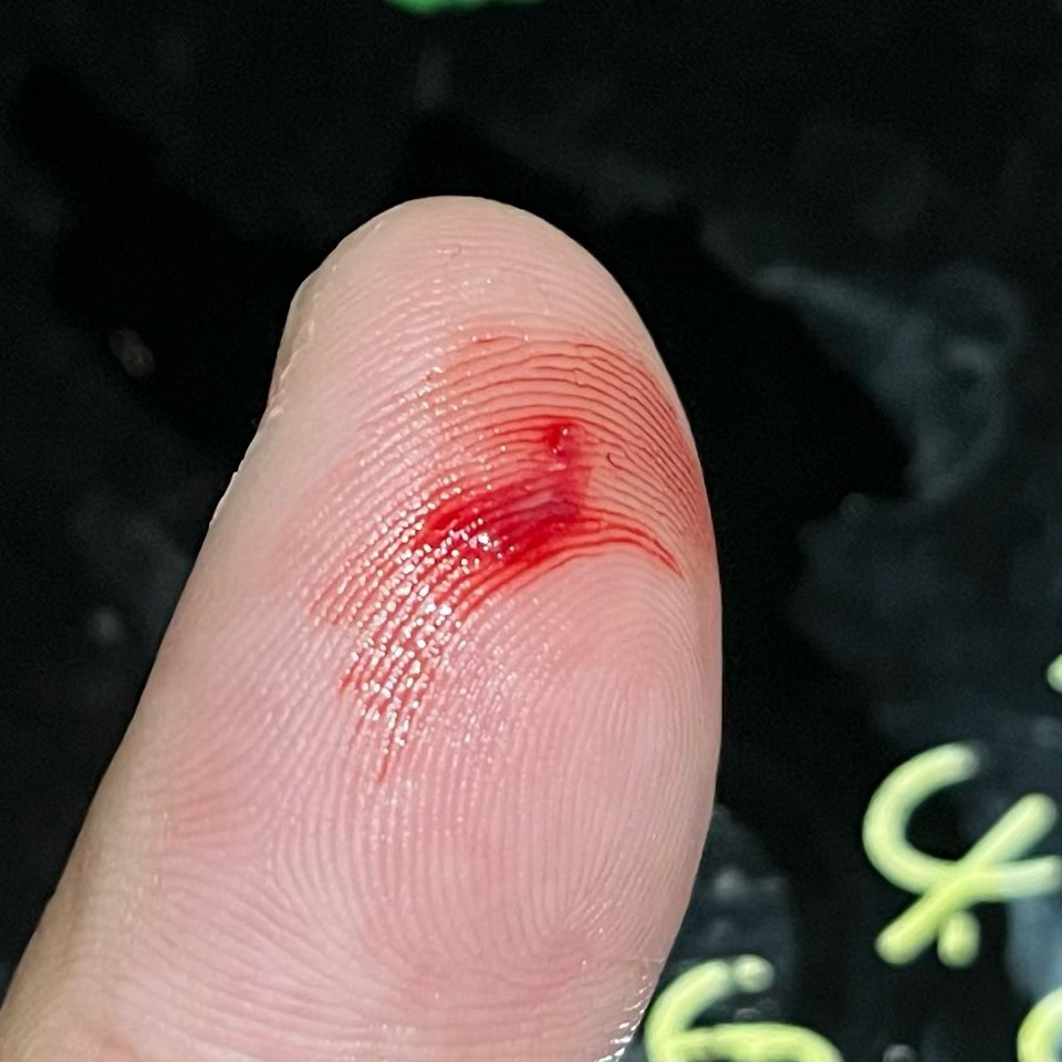 経験から、「あ、これはあとから血が出てくるな」ってわかりますが、初めてならわからないくらいの噛みつき方です。