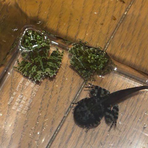 なんか、緑と黒のコントラストがすごくはっきりしているような気がしますが、これは地域差なのか、グレードが高いのか、まったくわかりません。昨日、ついに3匹目に手が生えてきました。
