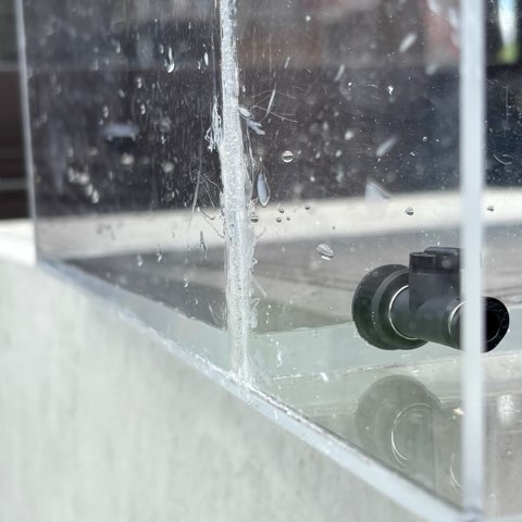 アクリル同士の部分も、コーキングなしでも漏水なしです!!もちろんボールバルブ部分も漏水していません!