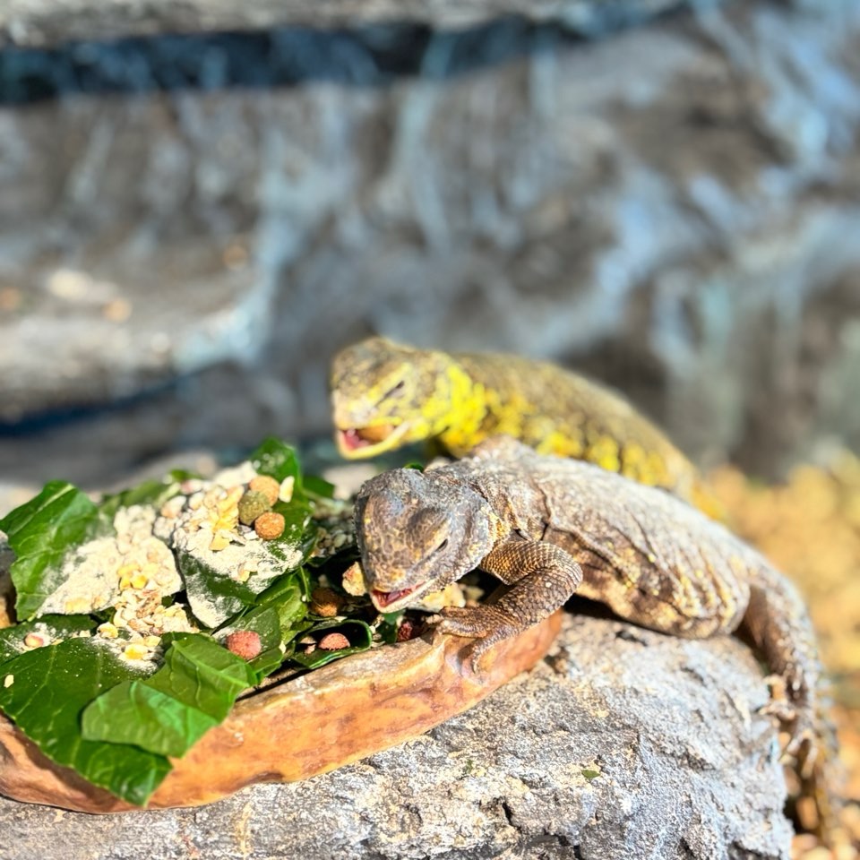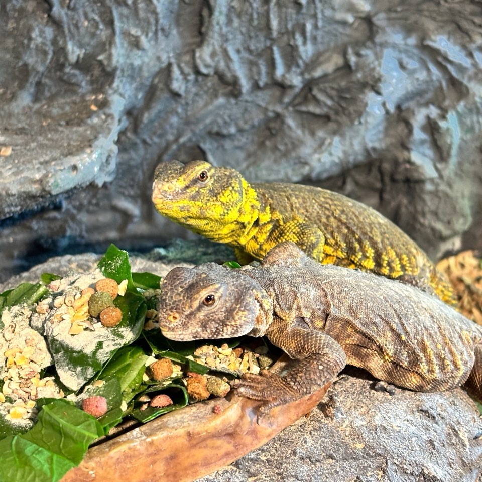 ゲイリートゲオアガマのペアです。黄色いほうがオス、茶色いほうがメスです。