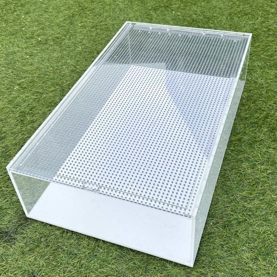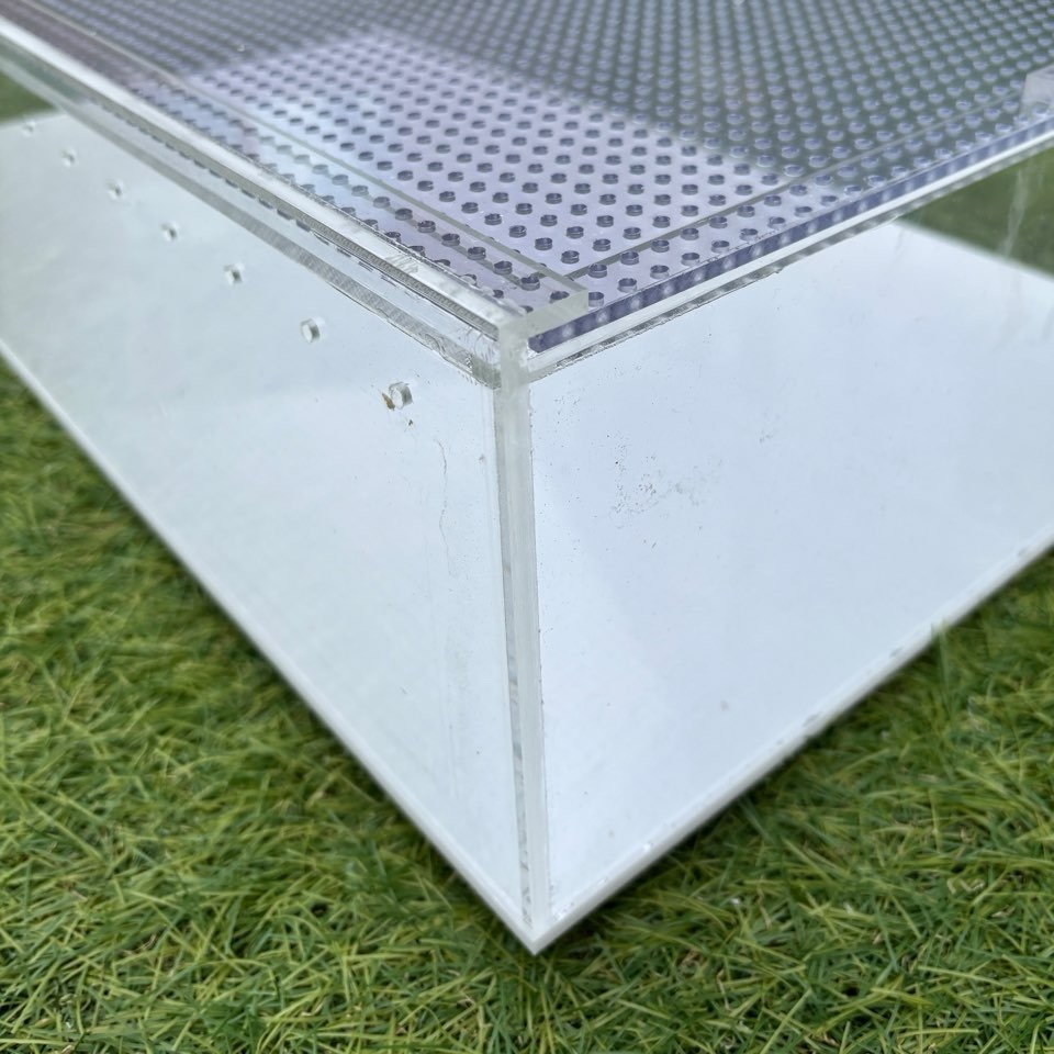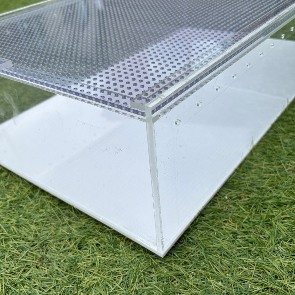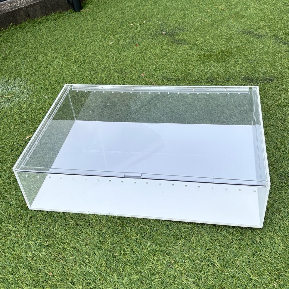 こちらは横に長いケースです。上部には穴ナシ。すべて5mmのアクリル板で作成しました。