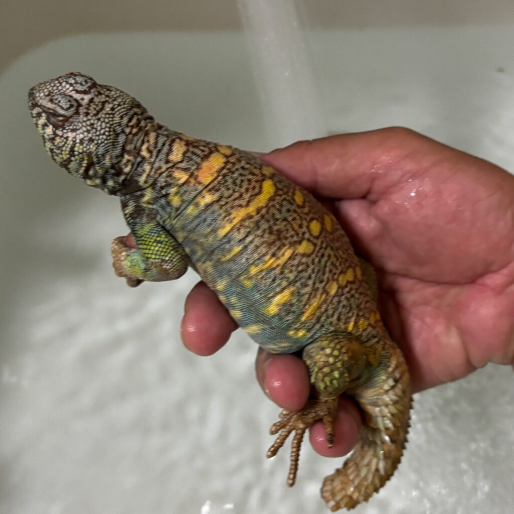 ただ、乾燥系の子で、水も野菜からとるので水皿はいらない。というくらいの種類なので、温浴はあまりよくないような感触を持ちました。おなかもプクプクになりました。水を飲みすぎたのかな?