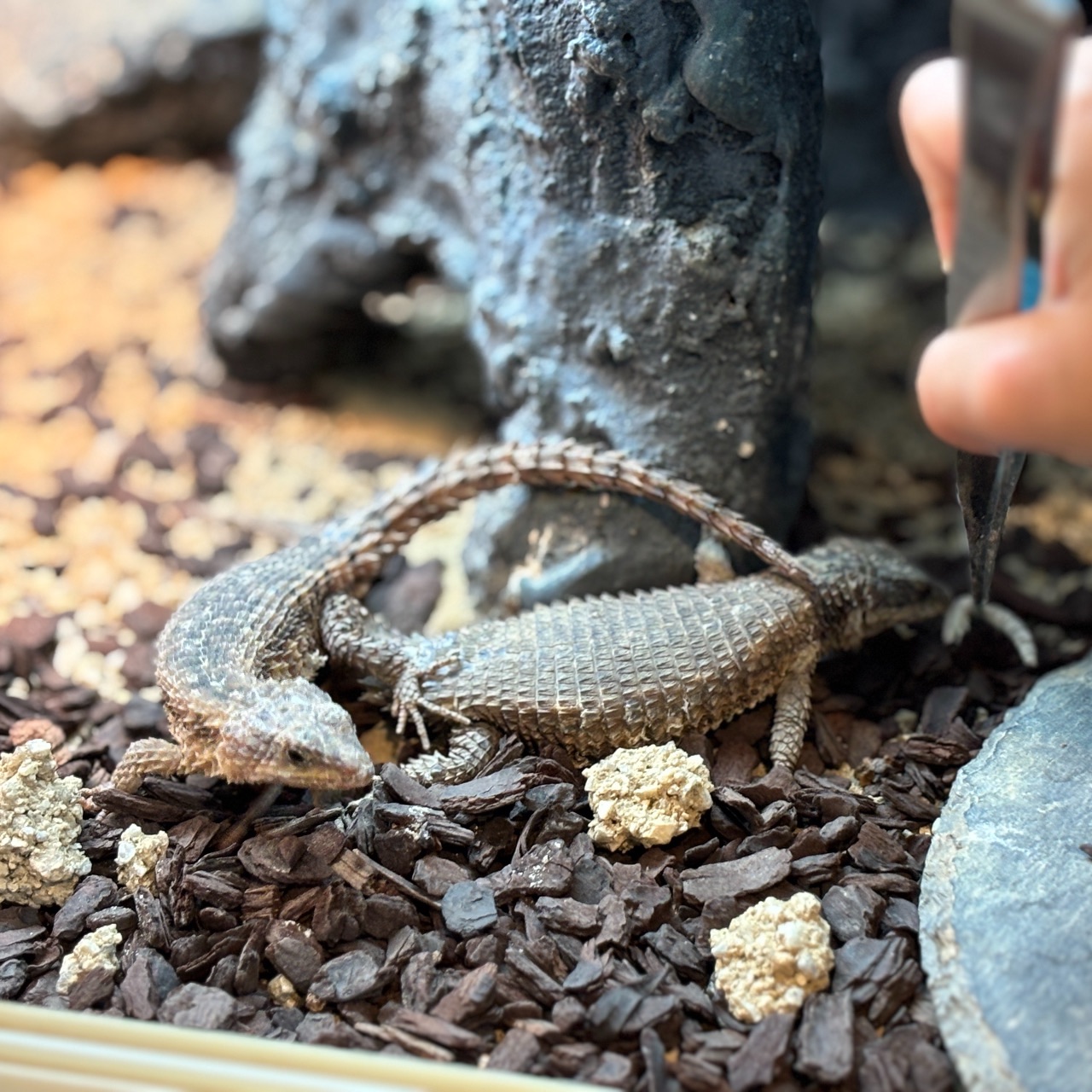 と思いだし、二人であげてみようとすると、私が扉を開けたらサササッと逃げていくのに、娘の時は逃げずに寄ってきています!開け方もそ~っと逃げないように開けていて、私よりも娘の方がよっぽどトカゲにストレスを与えないようにしている(笑)