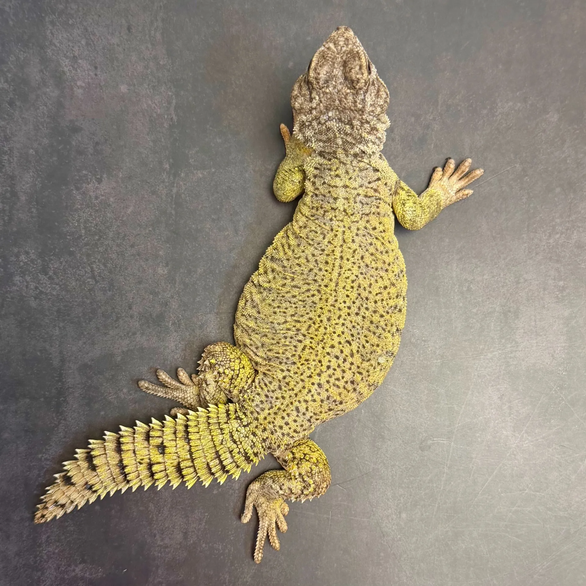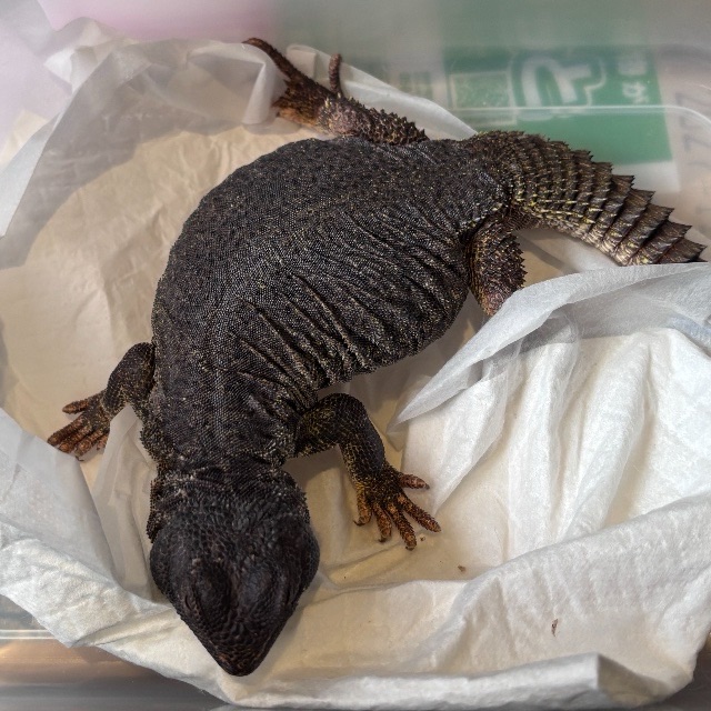 寒くて暗い中で1日過ごして外に出されたら、代々こんな感じの色になっています。数日して、バスキング、UVをたっぷり浴びたらどこまで伸びるか、楽しみですね。