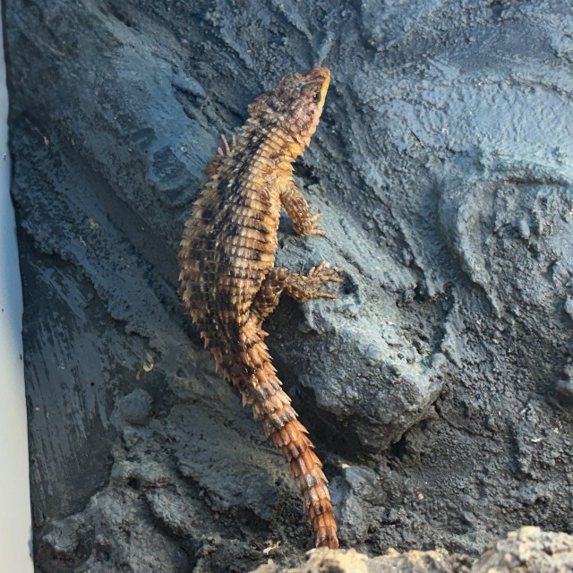 マサイヨロイトカゲは平べったい体格が特徴なのですが、ふっくらしています。結構長い間、ふっくらしているので、この子もおなかにベビーがいるのではないか。と怪しんでいます。